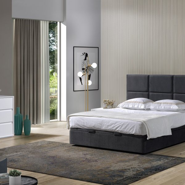 Cama com Estrado Elevatório, estofada em tecido classe A, Cabeceira com 1,50m e/ou 1,60m.