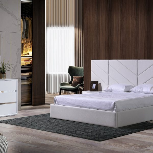 Cómoda R.01 com acabamento á cor branco e pormenores em inox.