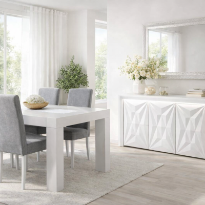 Adicionalmente, disponibilizamos a opção de aplicação de ponteiras em metal nos pés das cadeiras, conferindo um acabamento distinto e maior durabilidade. Esta opção é também sob consulta, podendo implicar ajuste de preço.Sala de Jantar Gio