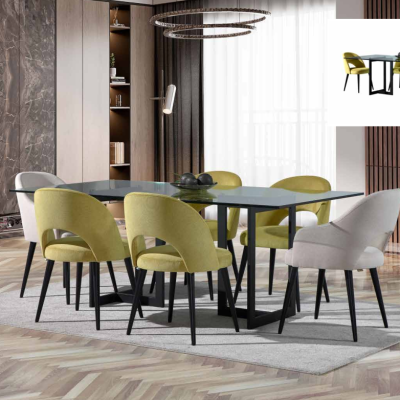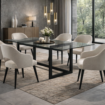 Adicionalmente, disponibilizamos a opção de aplicação de ponteiras em metal nos pés das cadeiras, conferindo um acabamento distinto e maior durabilidade. Esta opção é também sob consulta, podendo implicar ajuste de preço.Sala de Jantar Ali