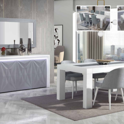 Adicionalmente, disponibilizamos a opção de aplicação de ponteiras em metal nos pés das cadeiras, conferindo um acabamento distinto e maior durabilidade. Esta opção é também sob consulta, podendo implicar ajuste de preço.Sala de Jantar SKY