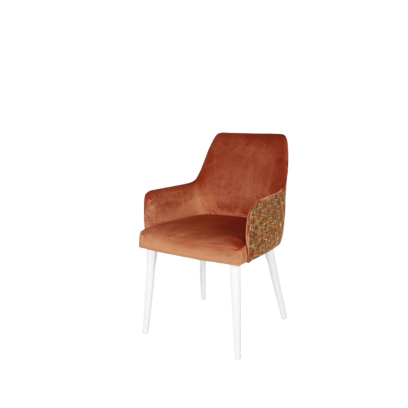 Cadeira Veneza c/ braços tecido classe A, pé lacado branco