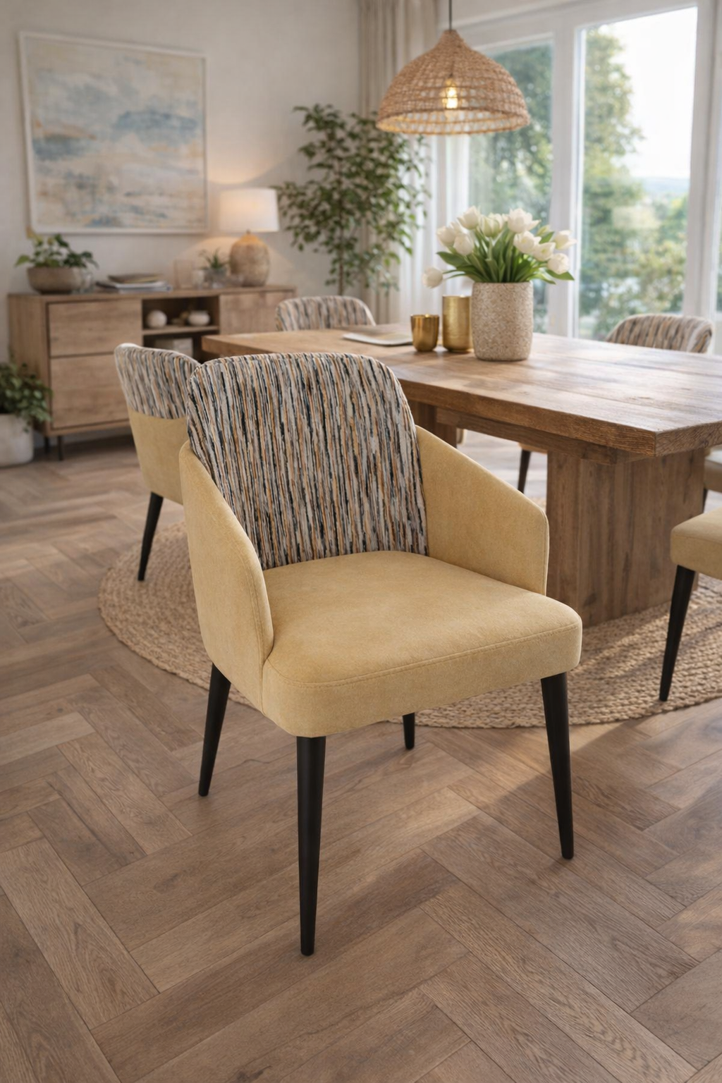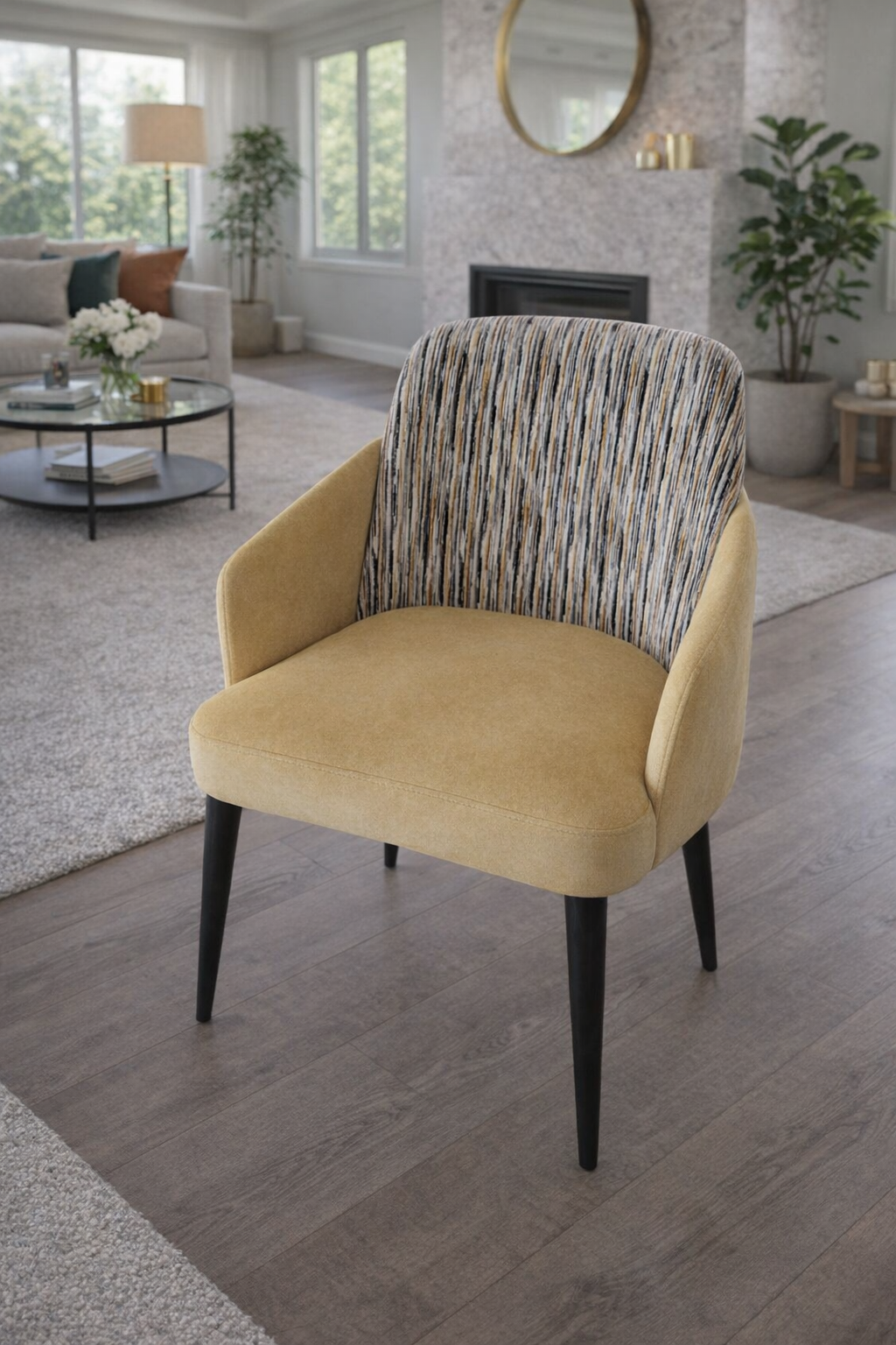 Esta cadeira combina conforto, elegância e versatilidade num design contemporâneo que se adapta a qualquer ambiente. O seu assento e encosto são revestidos com espuma de alta densidade RH, garantindo durabilidade e conforto superior. O tecido pode ser totalmente personalizado — disponível em várias cores, classes e tipos, permitindo criar combinações únicas que refletem o estilo e a atmosfera desejada.