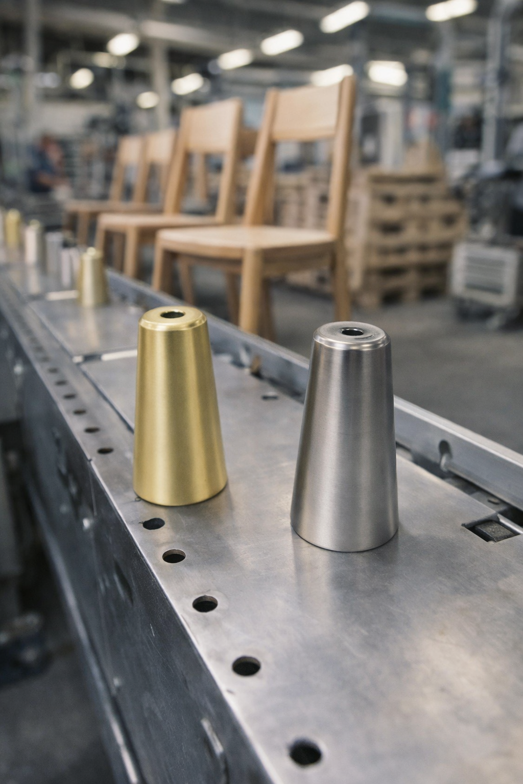 Adicionalmente, disponibilizamos a opção de aplicação de ponteiras em metal nos pés das cadeiras, conferindo um acabamento distinto e maior durabilidade. Esta opção é também sob consulta, podendo implicar ajuste de preço.