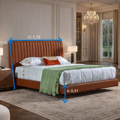 A cama apresenta uma estrutura robusta e um cabeceiro estofado com padrão geométrico, ideal para quem procura um toque de elegância moderna. O estofo da cama é totalmente personalizável — pode escolher a cor, o tipo de tecido e a classe, desde opções mais práticas até acabamentos premium. As medidas da cama também podem ser ajustadas conforme o espaço disponível e as necessidades do cliente.